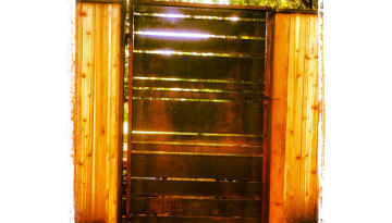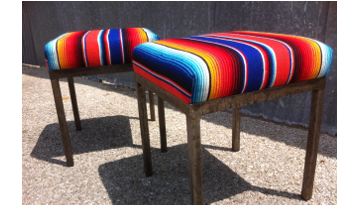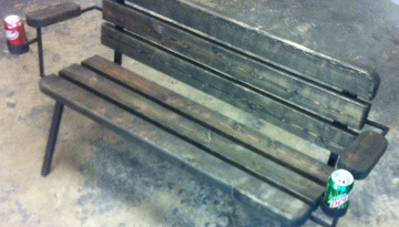 Steel frame with wooden brick lay seating. Sturdy and sophisticated design.