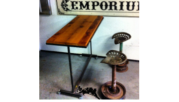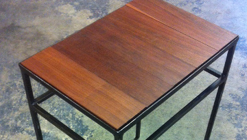 Clean and minimalistic. Raw metal and stained walnut for a classic look.